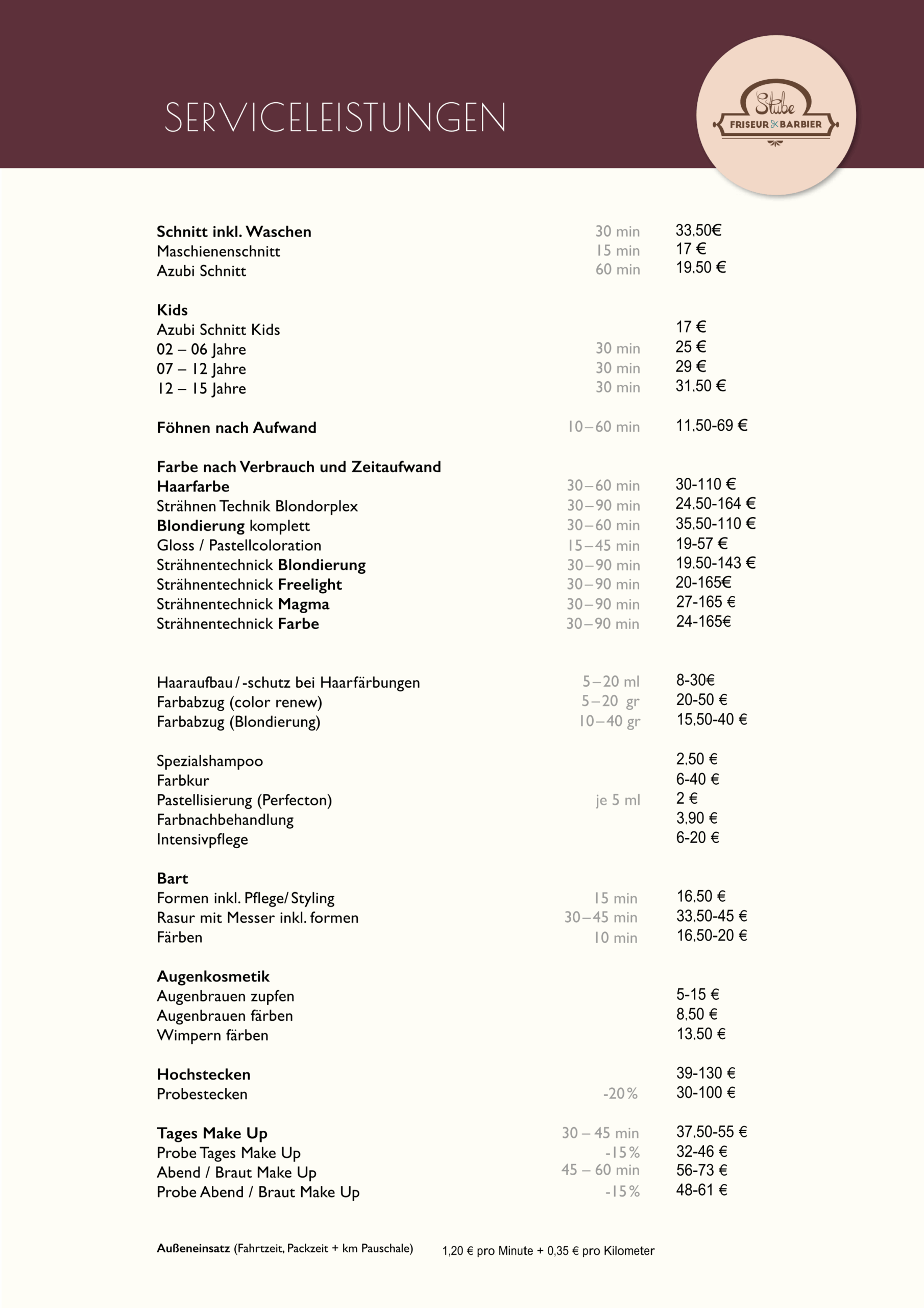 Wir möchten Sie in das gemütlichen Ambiente, das an die 50er/60er Jahre Stube erinnert einladen. Damals als der Friseur noch Treffpunkt der Stadt war, man gemütlich einen Kaffee trank und mit Freunden quatschen konnte. Die Frisuren erinnern nicht nur an diese Zeit, wir besuchen zusätzlich regelmäßig Seminare für neue Techniken und Trends und bringen immer unseren eigenen Stil mit rein.
